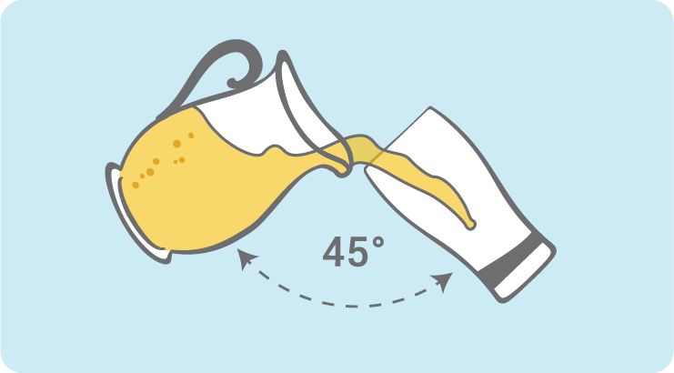 Pour pre-stirred beer into the serving glass (containing the dispensed thickener). Pour beer slowly and ensure the serving glass is held at a 45° angle while pouring to minimise additional foaming.