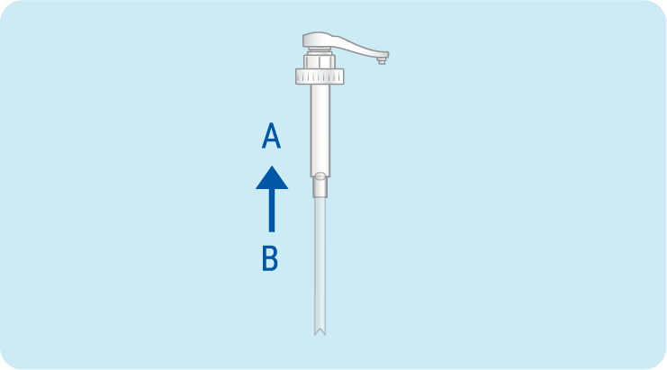 Push part B into part A firmly, making sure the ‘v shape’ cut end is at the bottom of the pump